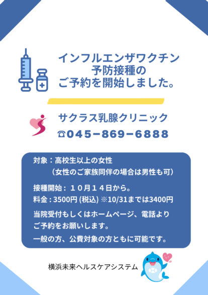 接種開始:10月14日より ※ワクチンが無くなり次第終了いたします。
